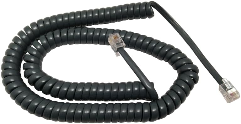 This 12-foot charcoal handset curly cord is a durable, tangle-resistant replacement cord designed for business telephones, including most Nortel, Avaya, Mitel, Cisco, and analog handsets. With extended length and high-quality shielding, it ensures clear audio and comfortable reach for desk setups of all sizes.